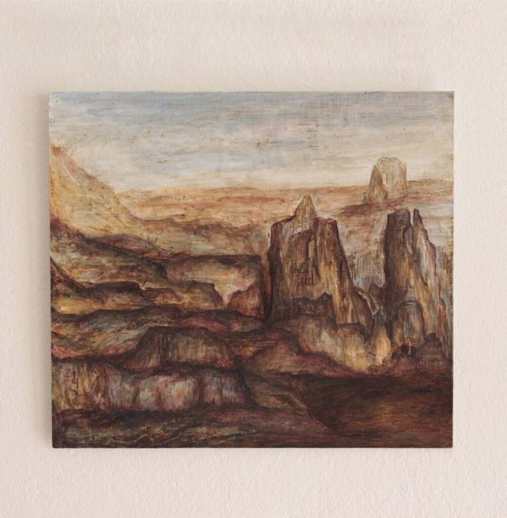 Canyon 2024 bitume e acrilico su dibond 28,1×24,9 cm