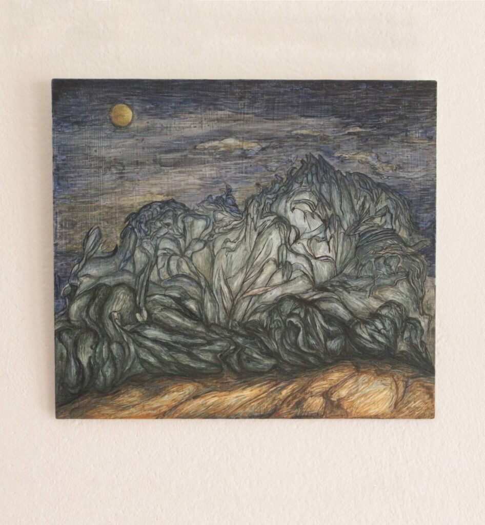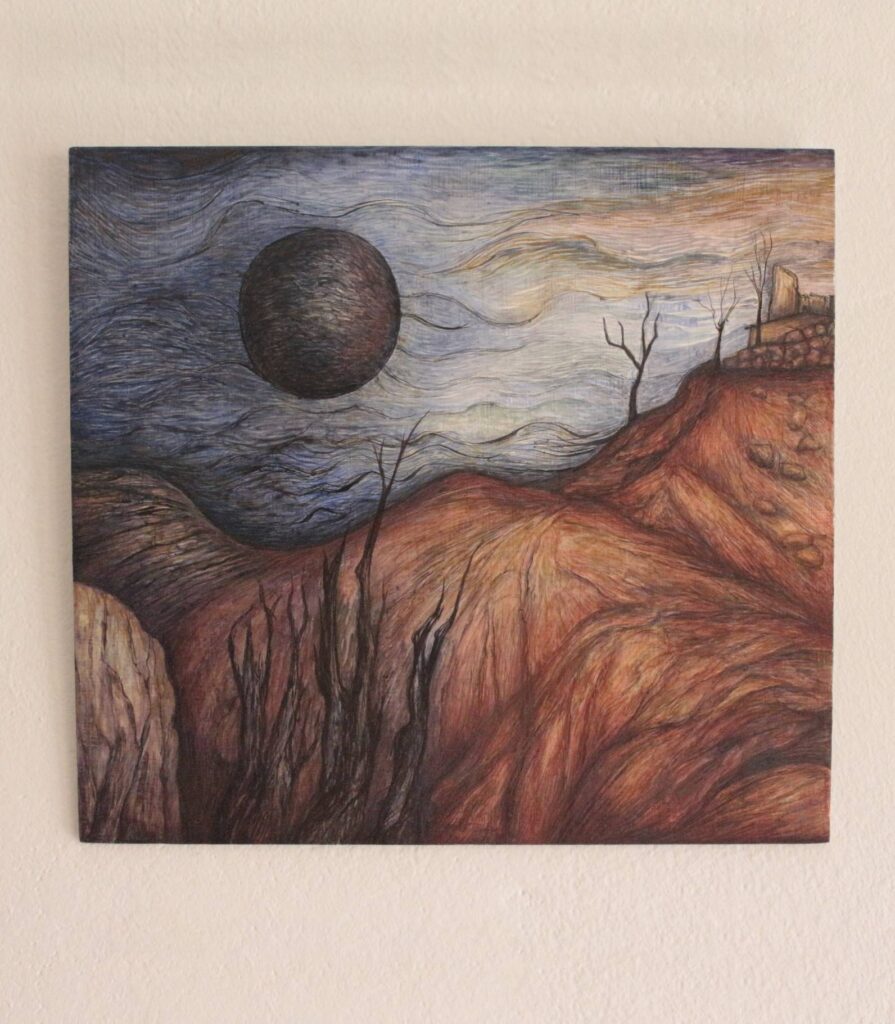 Caverna 2024 acrilico inchiostro su dibond 27,2×23,2 cm