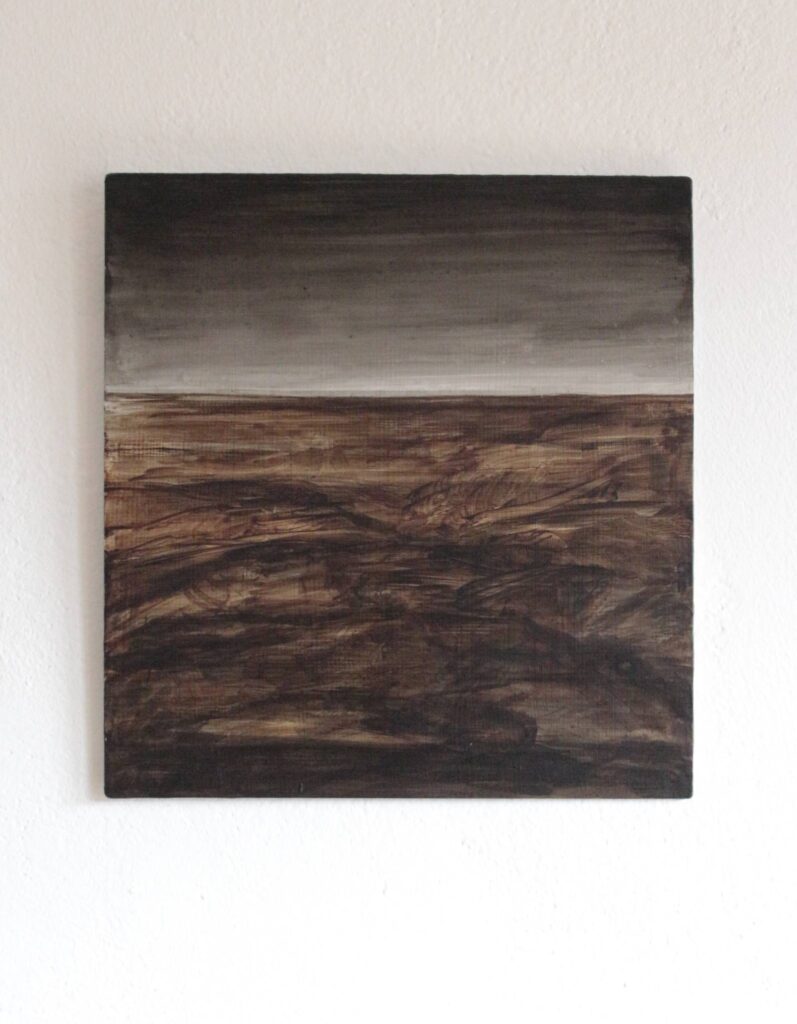 Torbiera 2025 bitume e inchiostro su dibond 27,5×25,8 cm