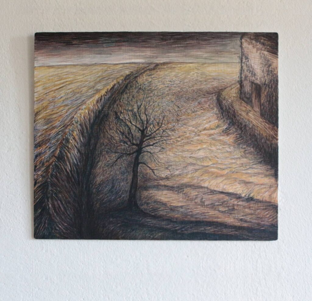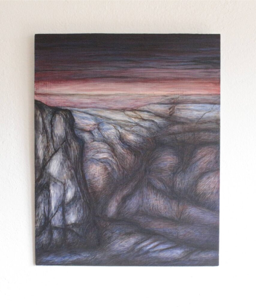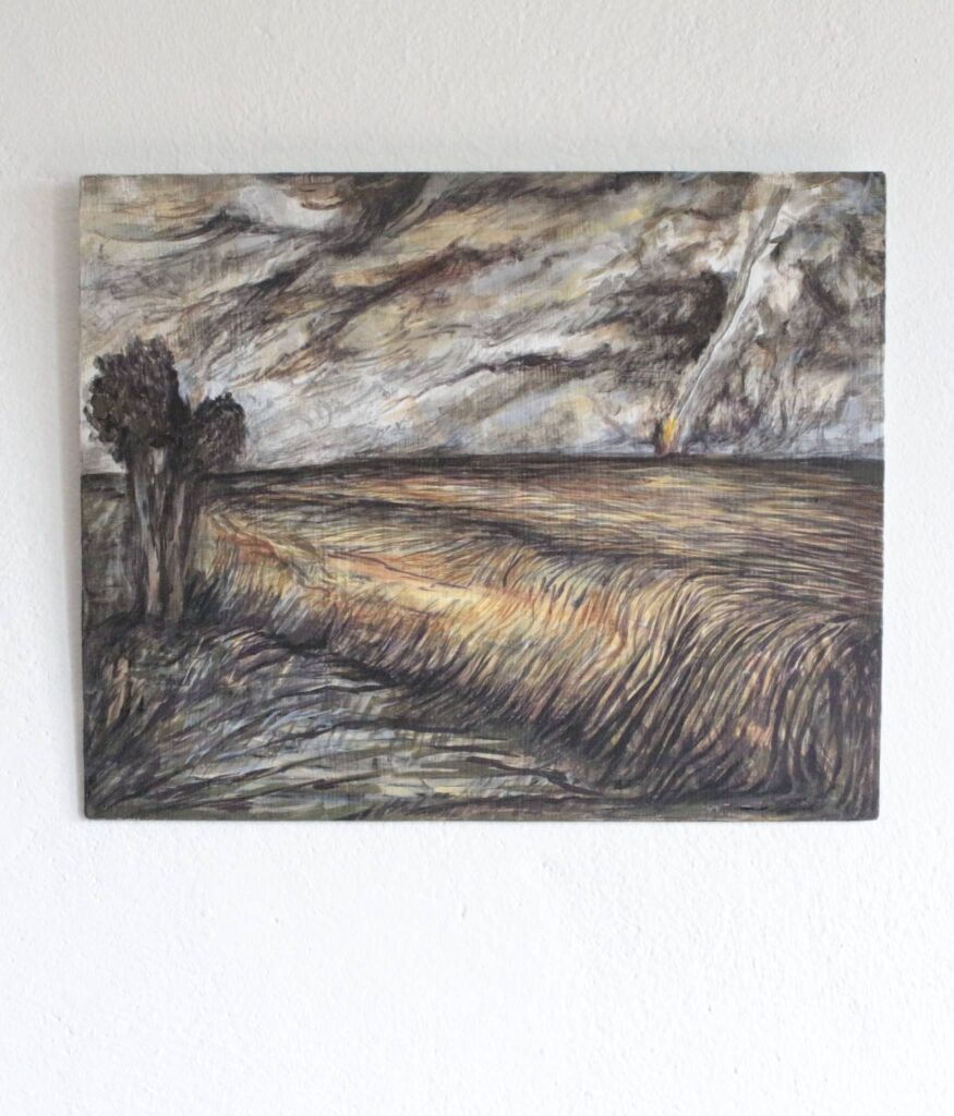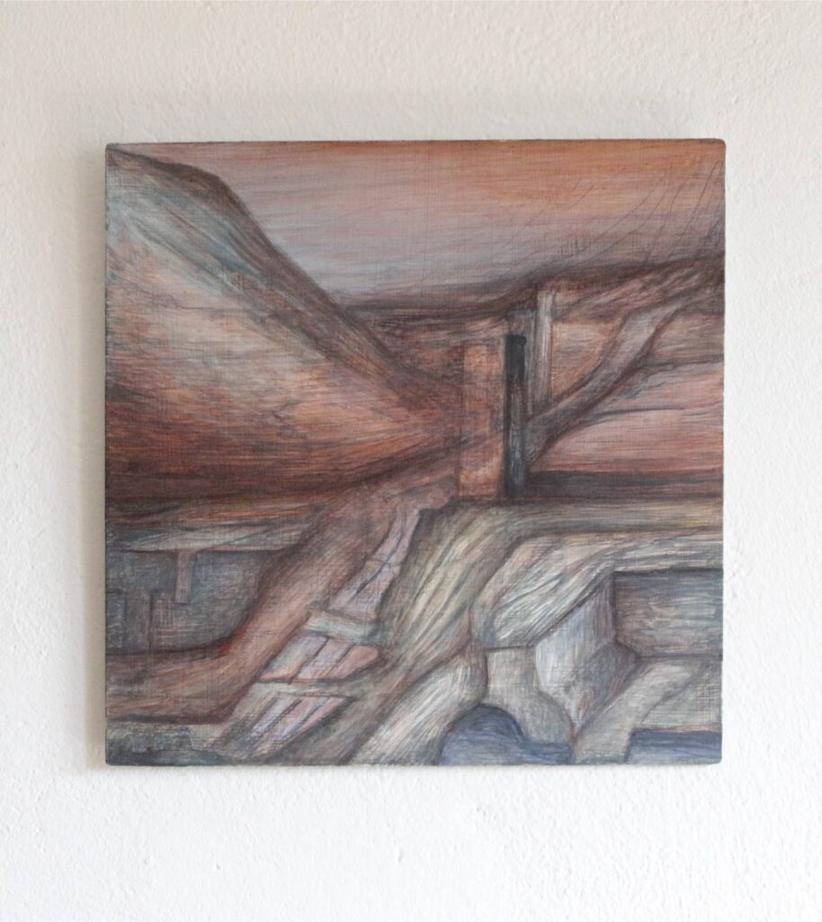 Fosso 2025 acrilico e inchiostro su dibond 27,7×23,5 cm