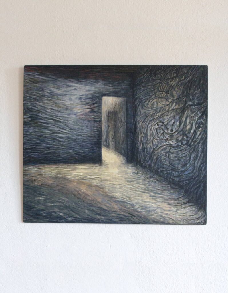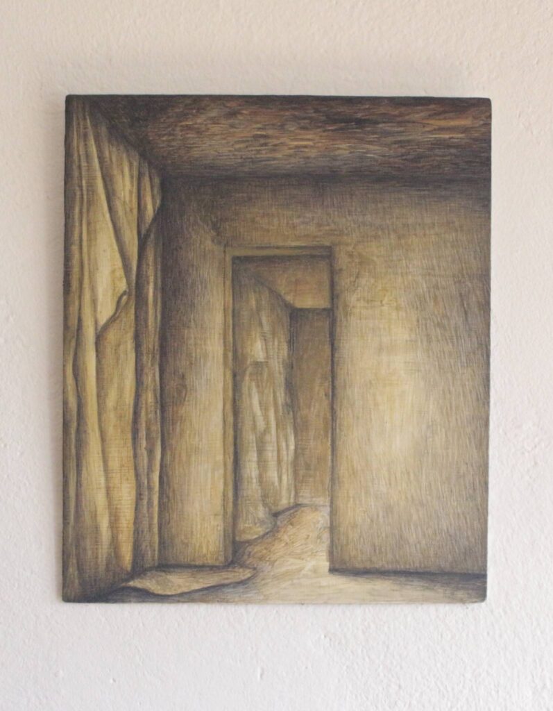 Stanza 2025 acrilico e inchiostro su dibond 32,1×27,7 cm